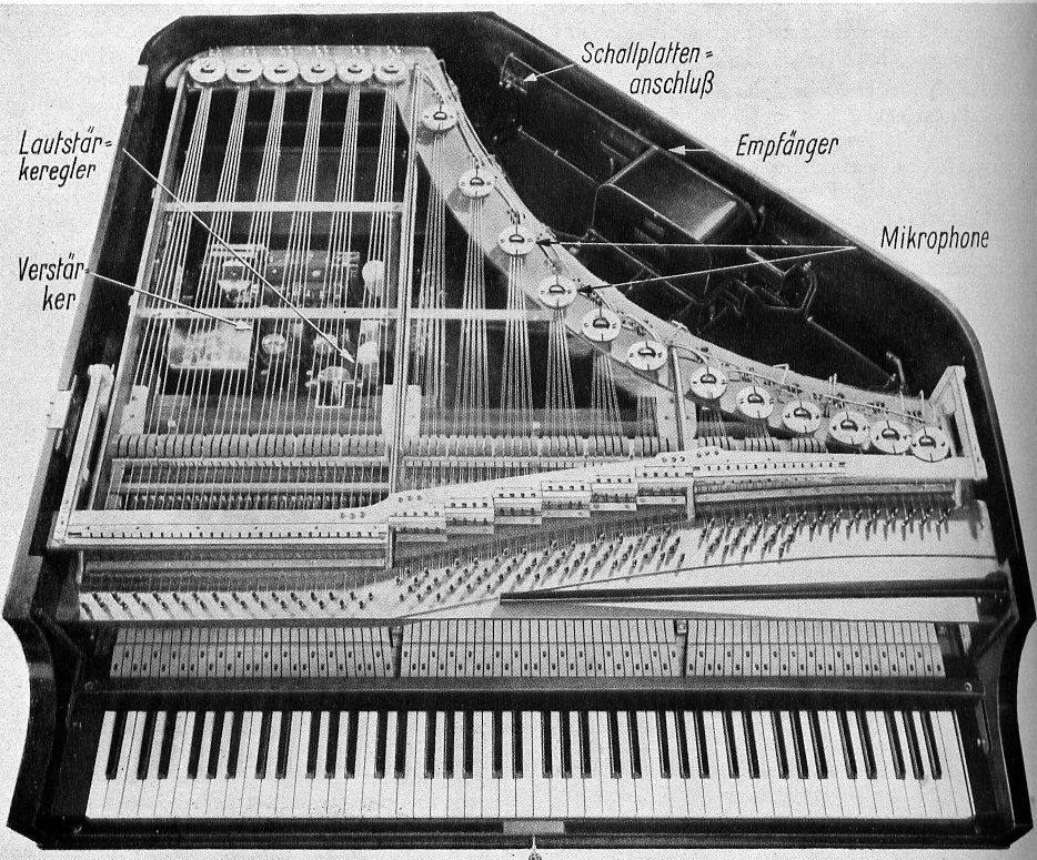 Die Versuche wurden mit großen Mitteln und den reichen Erfahrungen der Firma Bechstein aufgezogen, die die Anschlagmechanik neu gestaltete, und der Firma Siemens, die für eine vollkommene elektrische Durchbildung vom Mikrophon bis zum Lautsprecher Sorge trug. Unter der Patenschaft solch bewährter Kräfte ist das Instrument durchgearbeitet und erprobt worden.