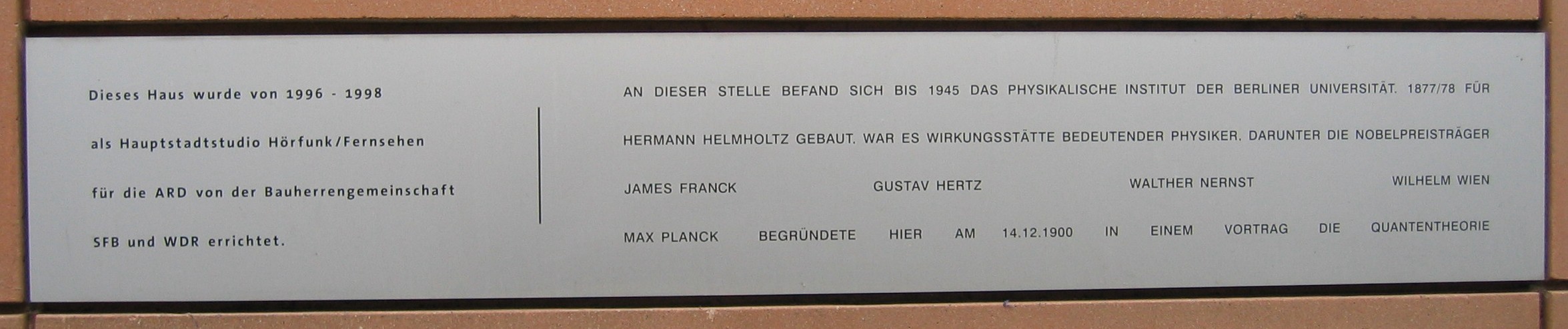 Max Planck begründete hier am 14.12.1900 in einem Vortrag die Quantentheorie